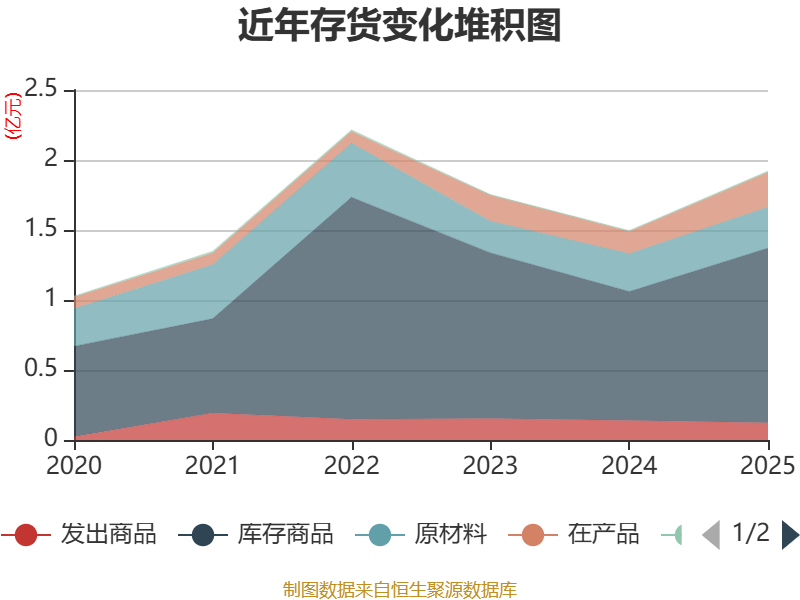 从存货变动来看,截至2025年末,公司存货账面价值为1.92亿元,占净资产的7.93%,较上年末增加4251.88万元。其中,存货跌价准备为1521.82万元,计提比例为7.34%。