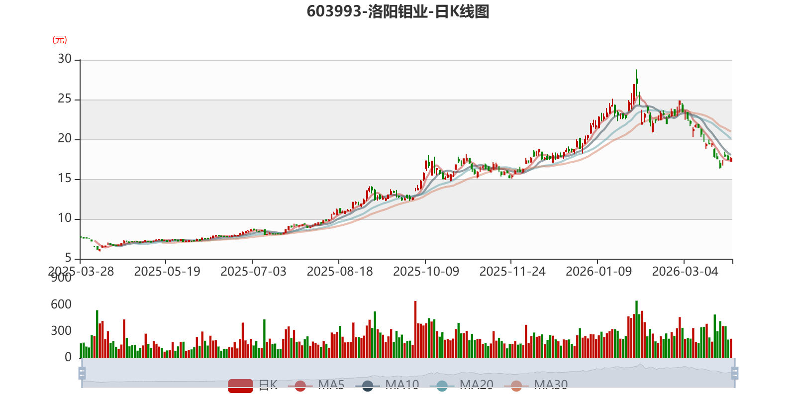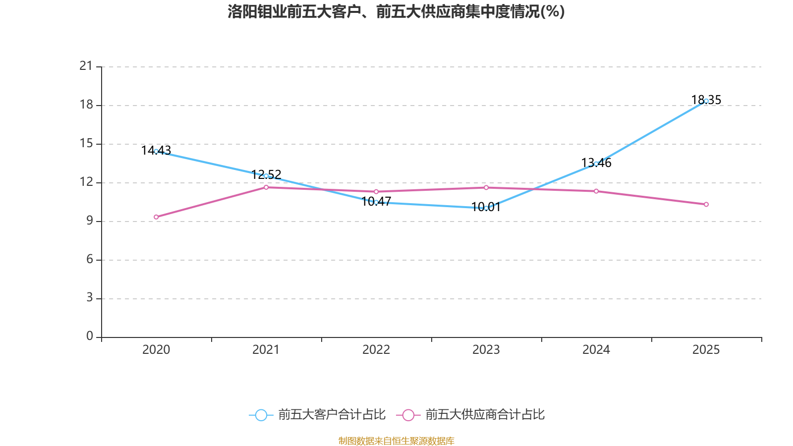 中证智能财讯洛阳钼业(603993)3月28日披露2025年年度报告。2025年,公司实现营业总收入2066.84亿元,同比下降2.98%;归母净利润203.39亿元,同比增长50.30%;扣非净利润204.07亿元,同比增长55.56%;经营活动产生的现金流量净额为208.43亿元,同比下降35.64%;报告期内,洛阳钼业基本每股收益为0.95元,加权平均净资产收益率为26.61%。公司2025年度分配预案为:拟向全体股东每10股派现2.86元(含税)。