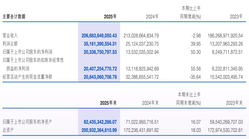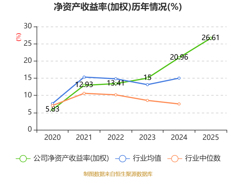 数据显示,2025年公司加权平均净资产收益率为26.61%,较上年同期上升5.65个百分点。公司2025年投入资本回报率为19.13%,较上年同期上升5.2个百分点。