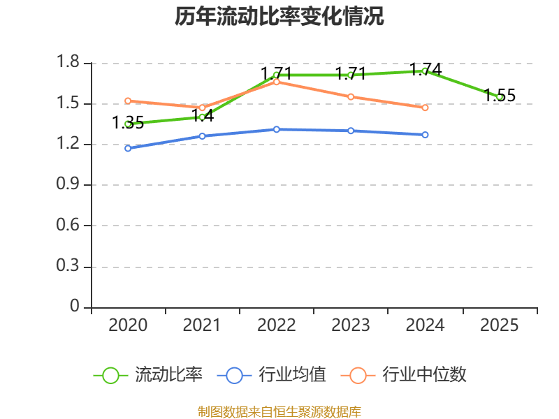 2025年,公司流动比率为1.55,速动比率为0.98。