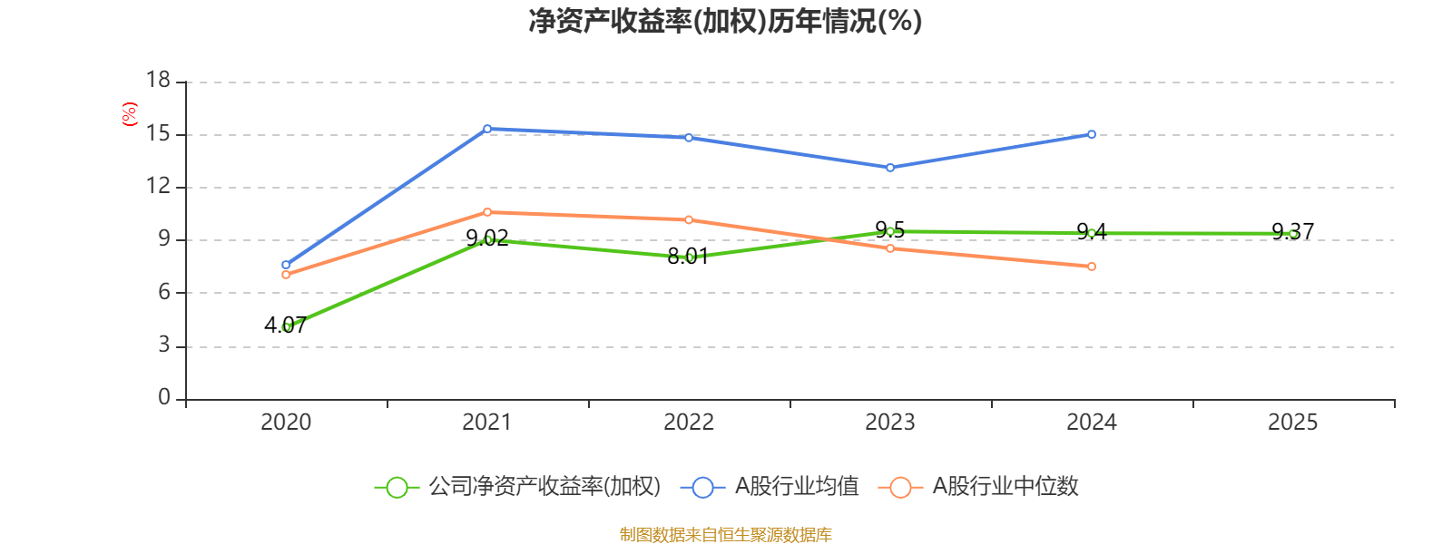数据显示,2025年公司平均净资产收益率为9.37%,较上年同期下降0.03个百分点。