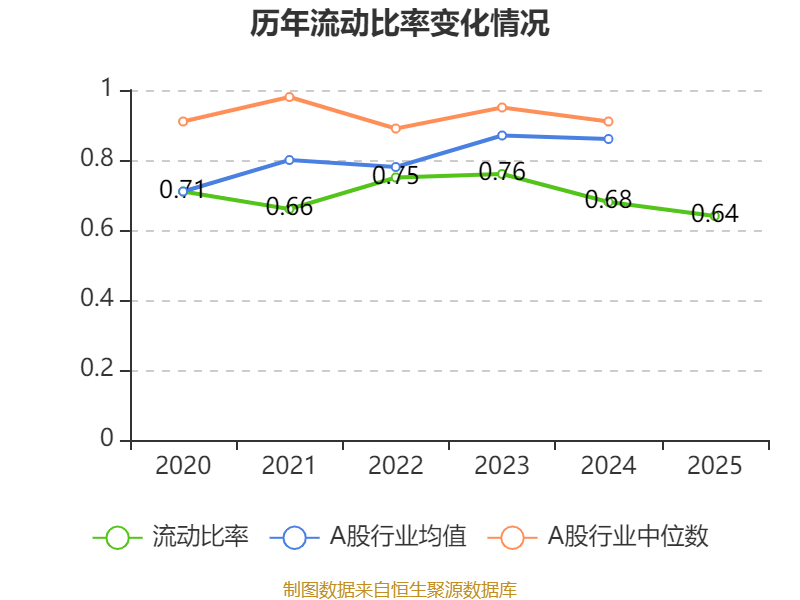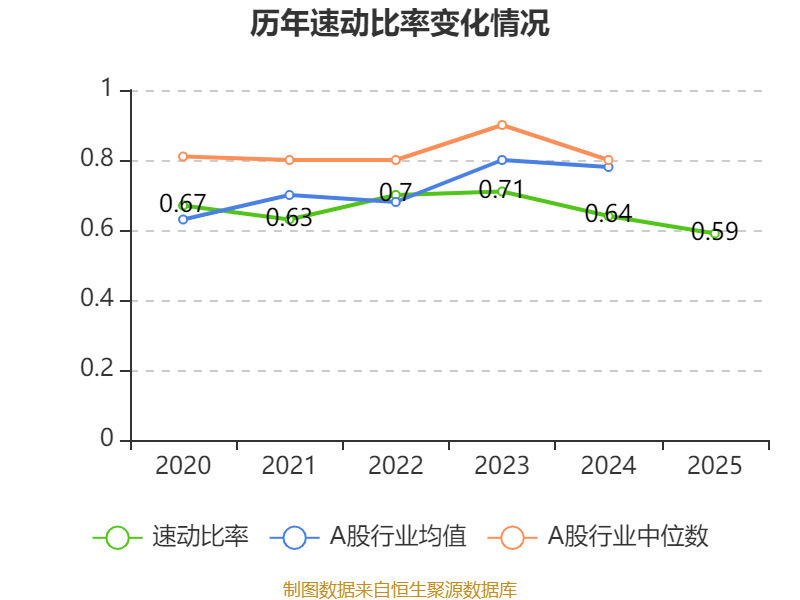2025年,公司流动比率为0.64,速动比率为0.59。
