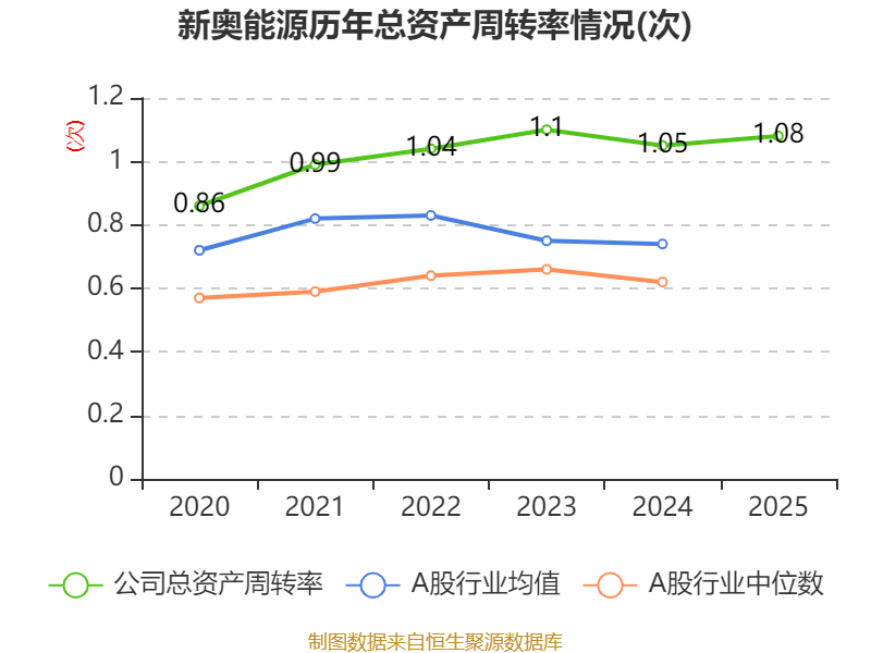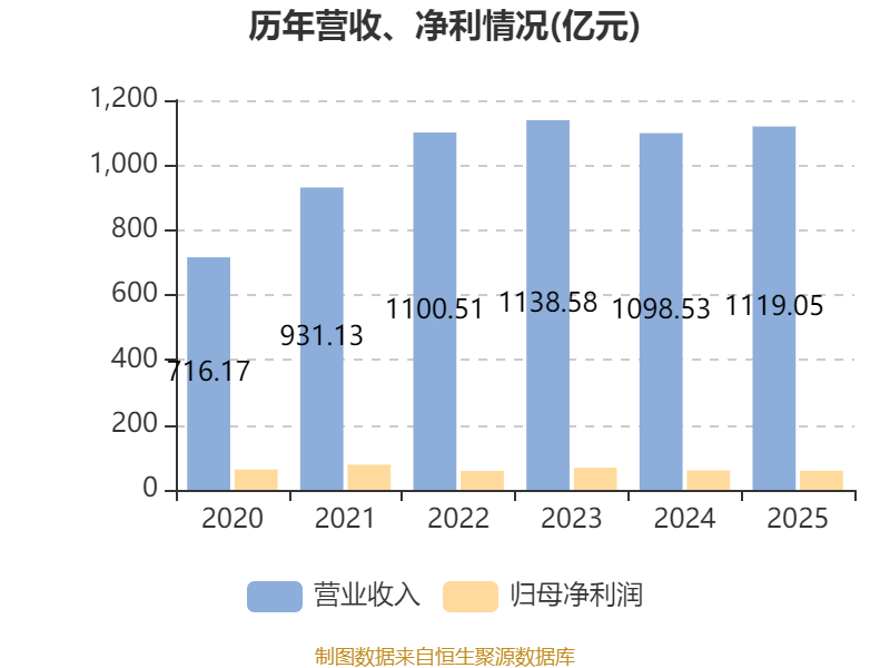 中证智能财讯新奥能源(02688)3月27日披露2025年度报告。报告期内,公司实现营业收入1119.05亿元,同比增长1.87%;归母净利润59.04亿元,同比下降1.39%;据报告显示,新奥能源基本每股收益为5.31元,平均净资产收益率为12.86%。公司2025年分配预案为:每股派息2.35港元相当于2.12元人民币。