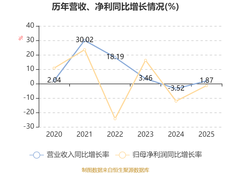 数据显示,2025年公司平均净资产收益率为12.86%,较上年同期下降0.64个百分点。