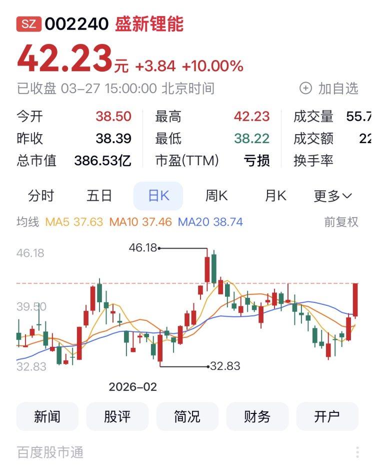 盛新锂能报收42.23元,日涨幅10.00%,换手率6.11%,周涨幅20.07%,今年以来涨幅22.65%。