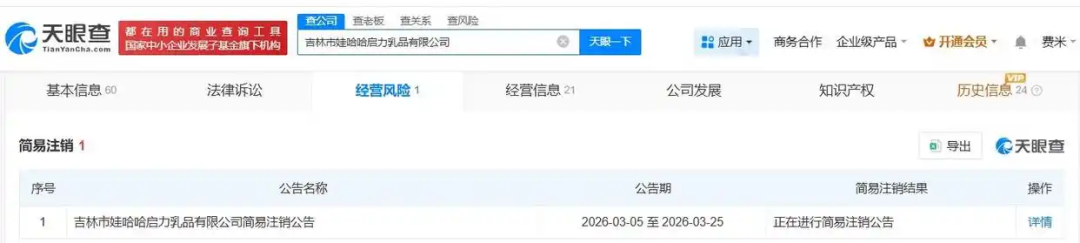 今年以来,根据天眼查信息,宗馥莉实际控制的多家公司计划注销,其中包括沈阳娃哈哈食品有限公司,杭州宏胜恒泽生物科技有限公司,吉林市娃哈哈启力乳品有限公司,杭州娃哈哈精密机械有限公司和杭州娃哈哈电子商务有限公司。另外,陕西娃哈哈宏振饮用水有限公司,桂林娃哈哈饮用水有限公司,南京娃哈哈宏振饮用水有限公司以及杭州娃哈哈文化传媒有限公司已于2月25日至3月6日期间完成注销手续。宗馥莉在这些公司中担任董事或执行董事等职务。