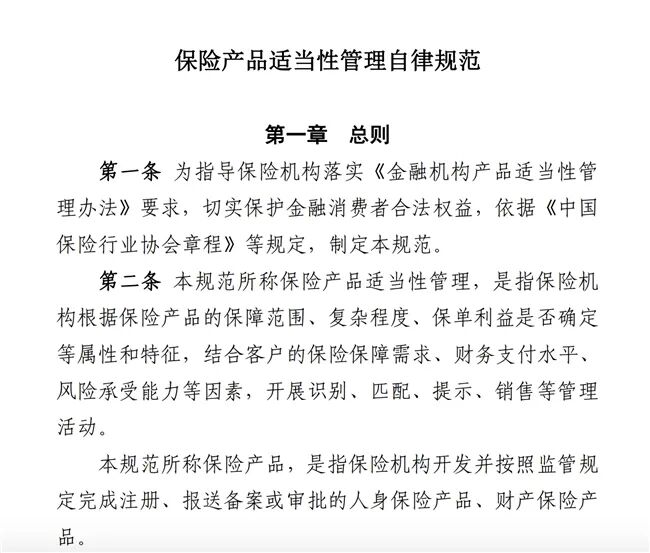 保险业首部聚焦产品适当性管理的自律性文件下发。