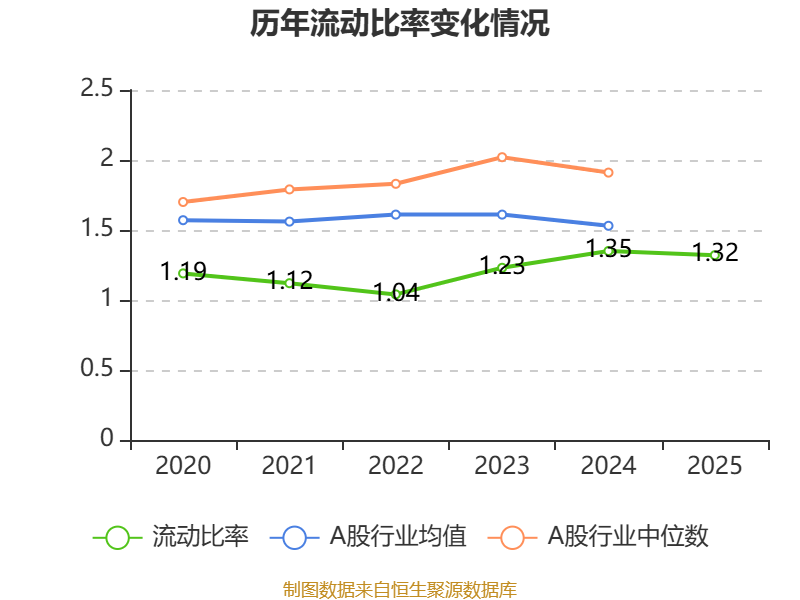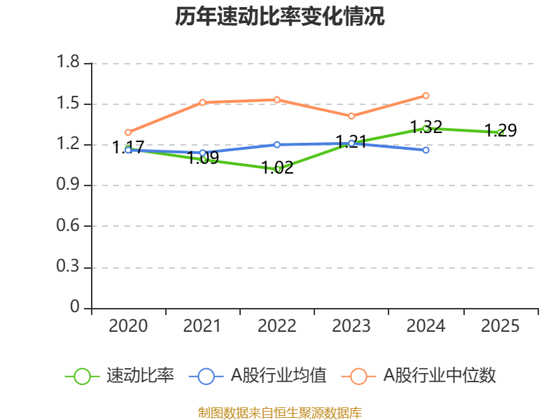 2025年,公司流动比率为1.32,速动比率为1.29。