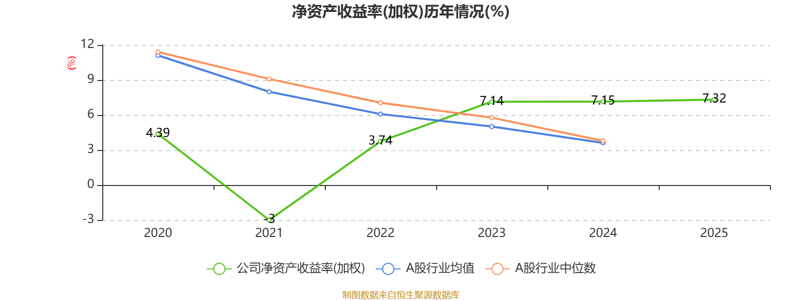 数据显示,2025年公司平均净资产收益率为7.32%,较上年同期上升0.17个百分点。