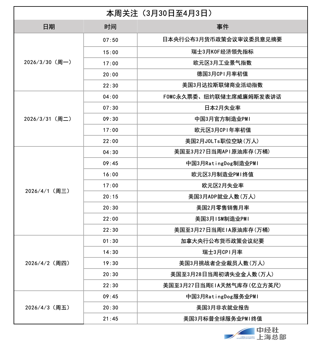 下周(3月30日至4月3日),地缘政治冲突仍将牵动全球各类资产走势,与此同时,美国多项就业数据即将揭晓,包括ADP “小非农”就业数据、非农就业报告,为市场揭示最新美国劳动力市场状况。