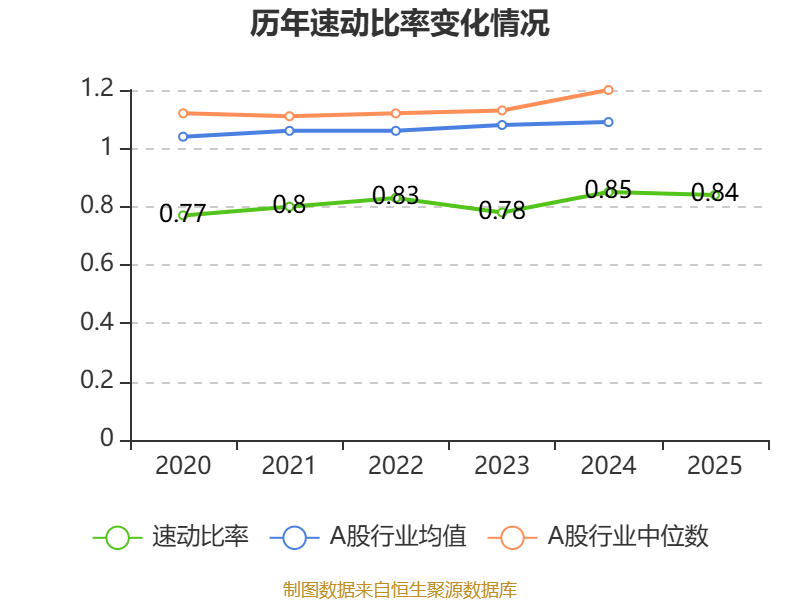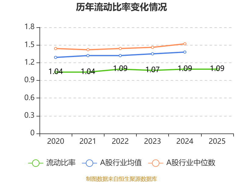 2025年,公司流动比率为1.09,速动比率为0.84。
