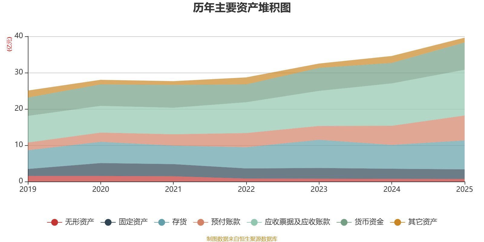 资产重大变化方面,截至2025年末,公司货币资金较上期末增加33.82%,占公司总资产比重上升2.74个百分点;预付账款较上期末增加30.28%,占公司总资产比重上升2.09个百分点;应收票据及应收账款较上期末增加7.83%,占公司总资产比重下降1.99个百分点;应收款项融资较上期末减少98.8%,占公司总资产比重下降1.65个百分点。