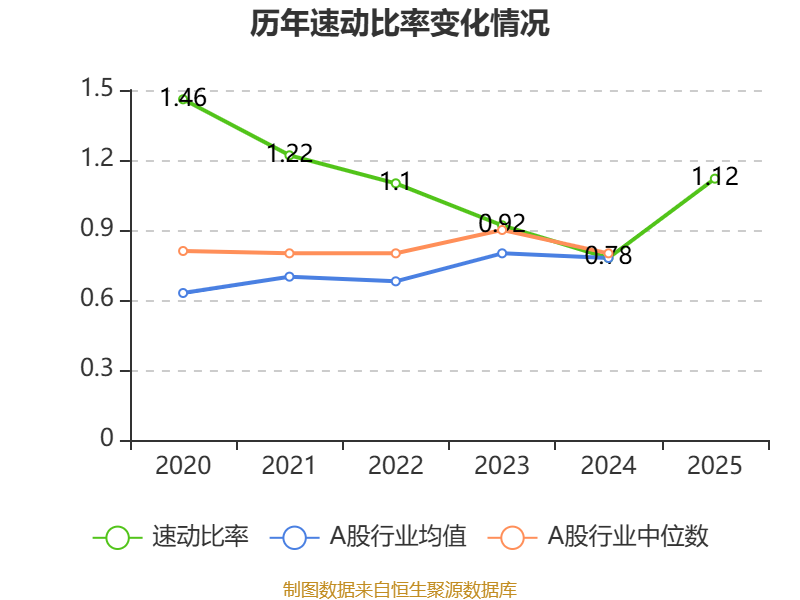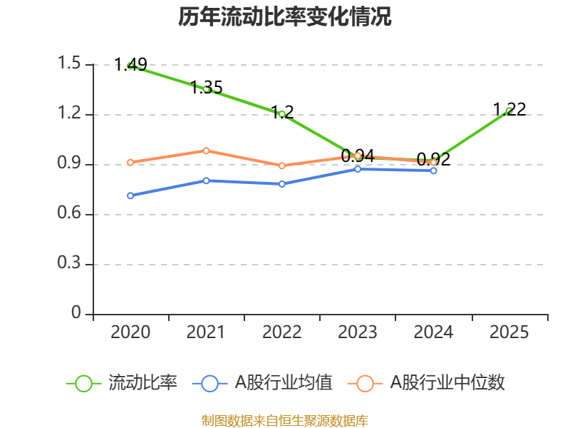 2025年,公司流动比率为1.22,速动比率为1.12。