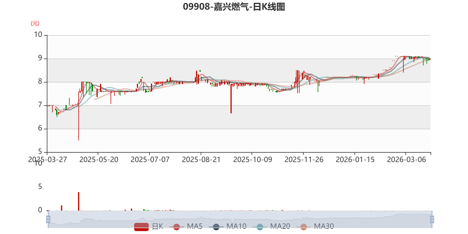 以3月27日收盘价计算,嘉兴燃气目前市盈率(TTM)约7.43倍,市净率(TTM)约0.91倍,市销率(TTM)约0.36倍。