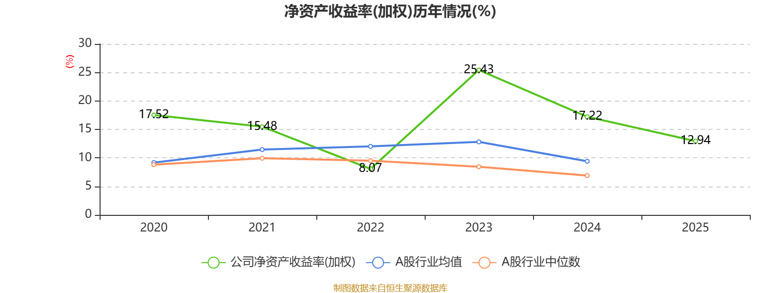 数据显示,2025年公司平均净资产收益率为12.94%,较上年同期下降4.28个百分点。