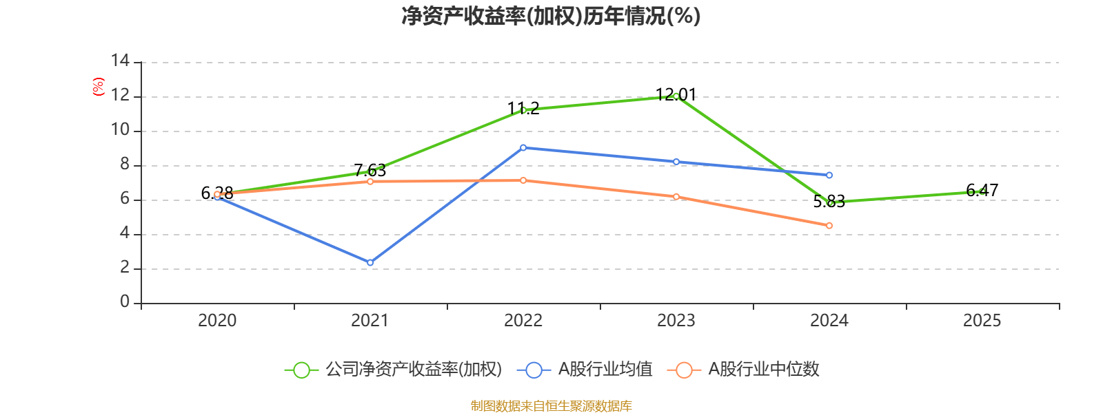 数据显示,2025年公司平均净资产收益率为6.47%,较上年同期上升0.64个百分点。