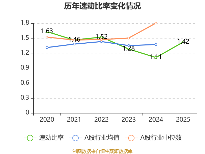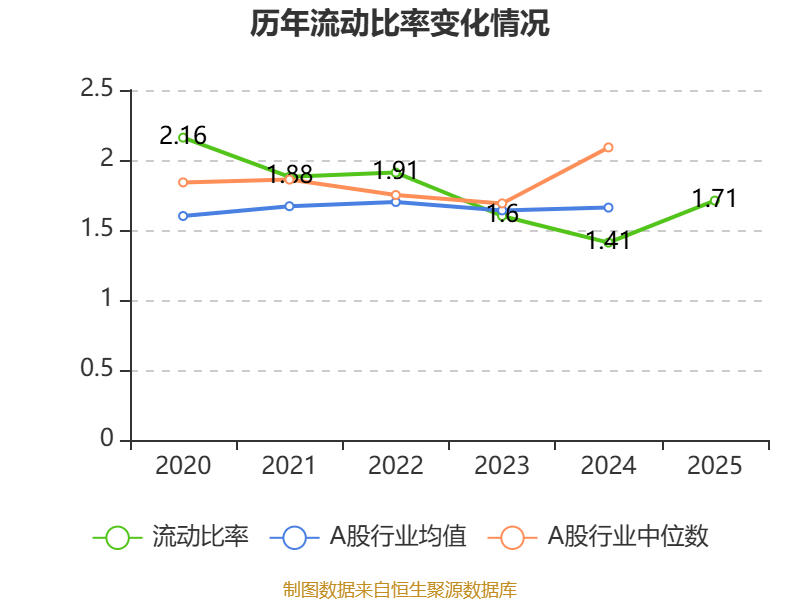 2025年,公司流动比率为1.71,速动比率为1.42。
