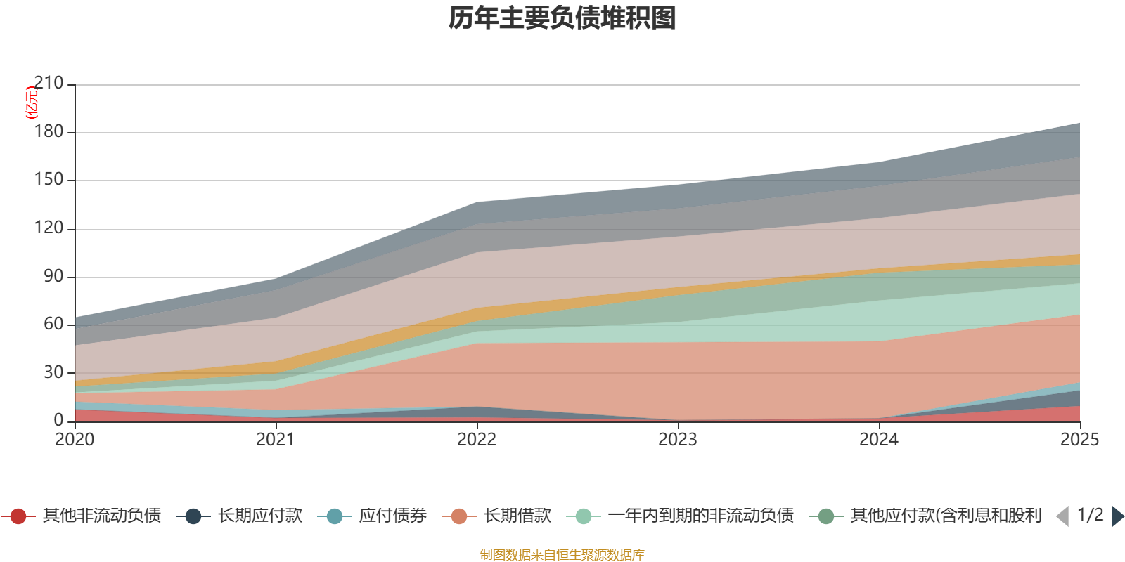 负债重大变化方面,截至2025年末,公司长期借款较上期末减少11.94%,占公司总资产比重下降3.5个百分点;一年内到期的非流动负债较上期末减少23.54%,占公司总资产比重下降2.68个百分点;长期应付款占公司总资产的2.68%,上期末为0;其他应付款(含利息和股利)较上期末减少32.37%,占公司总资产比重下降2.23个百分点。