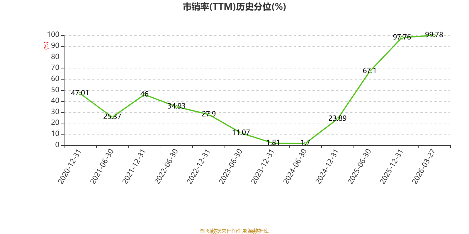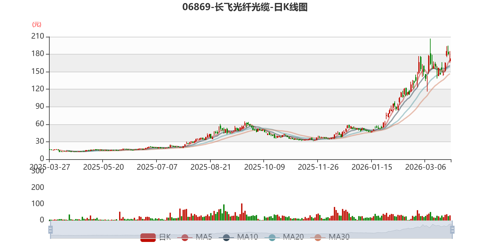 以3月27日收盘价计算,长飞光纤光缆目前市盈率(TTM)约158.33倍,市净率(TTM)约9.33倍,市销率(TTM)约9.04倍。