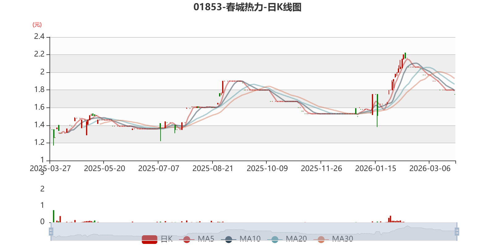 以3月27日收盘价计算,春城热力目前市盈率(TTM)约9.03倍,市净率(TTM)约0.67倍,市销率(TTM)约0.43倍。