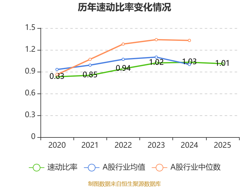 2025年,公司流动比率为1.01,速动比率为1.01。