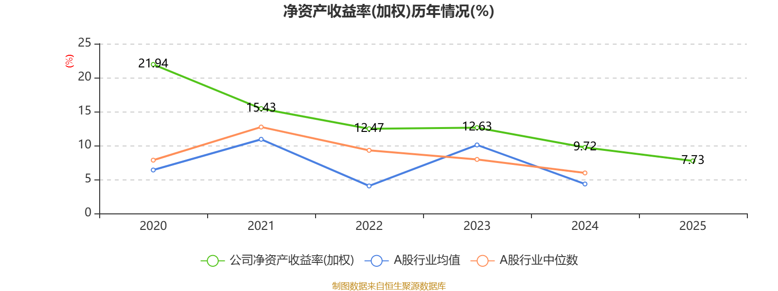数据显示,2025年公司平均净资产收益率为7.73%,较上年同期下降1.99个百分点。