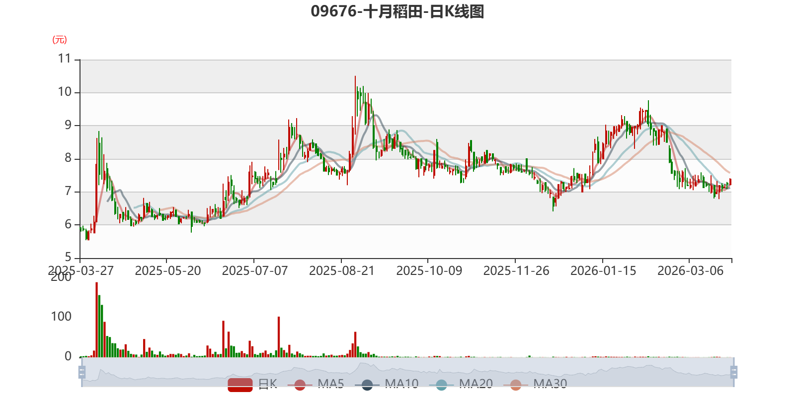以3月27日收盘价计算,十月稻田目前市盈率(TTM)约36.54倍,市净率(TTM)约1.85倍,市销率(TTM)约1.04倍。