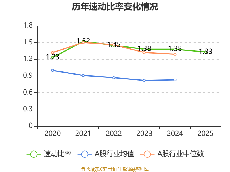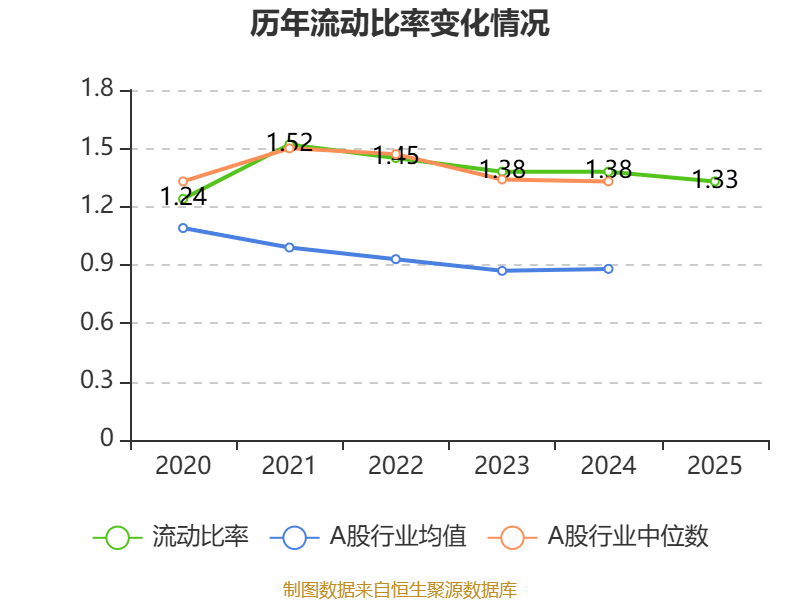 2025年,公司流动比率为1.33,速动比率为1.33。