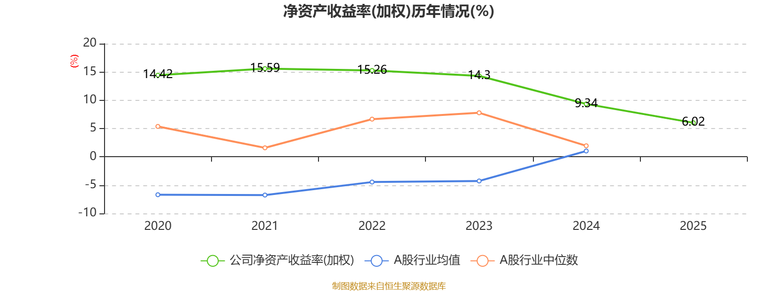 数据显示,2025年公司平均净资产收益率为6.02%,较上年同期下降3.32个百分点。