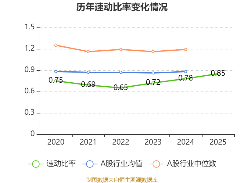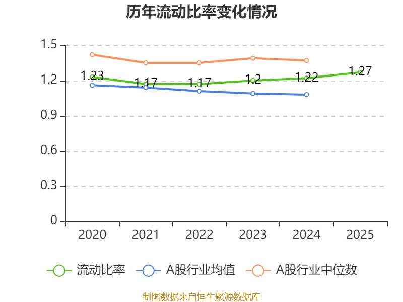 2025年,公司流动比率为1.27,速动比率为0.85。