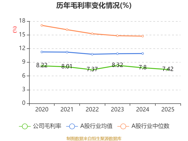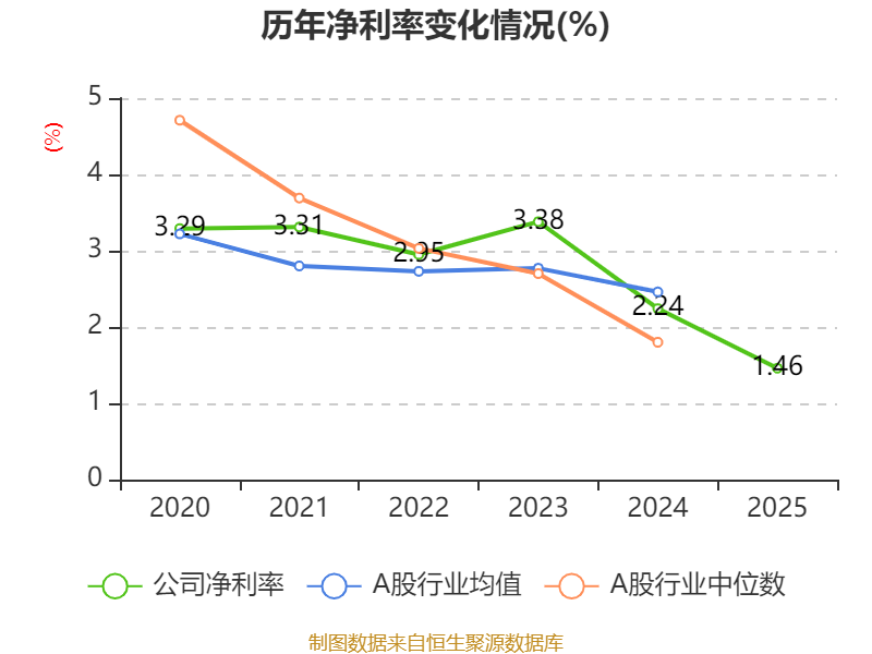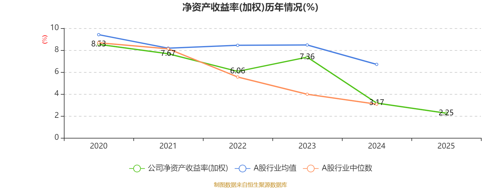 数据显示,2025年公司平均净资产收益率为2.25%,较上年同期下降0.92个百分点。