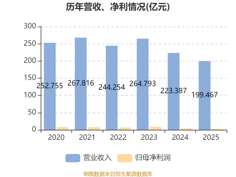 中证智能财讯宝业集团(02355)3月27日披露2025年度报告。报告期内,公司实现营业收入199.47亿元,同比下降10.71%;归母净利润2.9亿元,同比下降29.34%;据报告显示,宝业集团基本每股收益为0.56元,平均净资产收益率为2.25%。