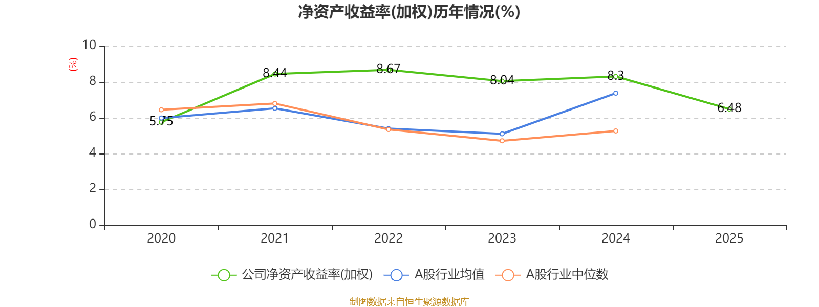 数据显示,2025年公司平均净资产收益率为6.48%,较上年同期下降1.82个百分点。