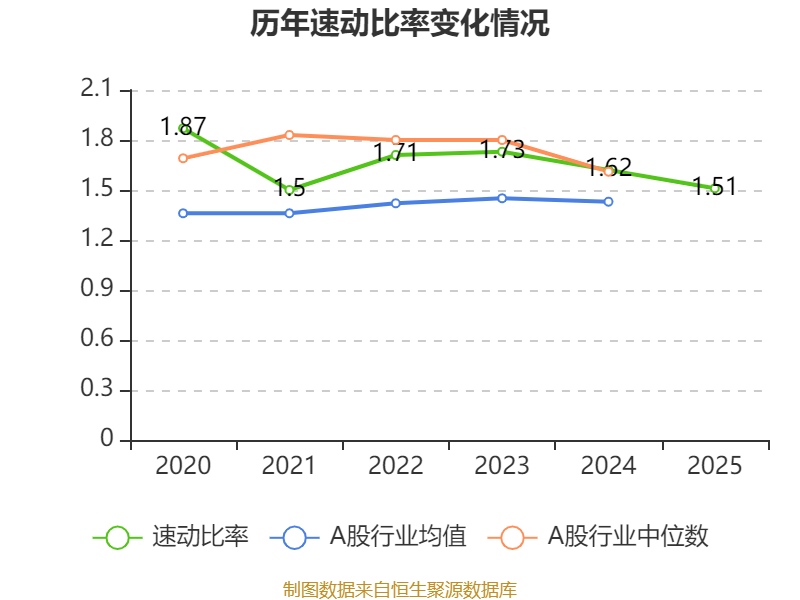 2025年,公司流动比率为1.76,速动比率为1.51。