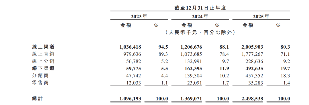 面对线下渠道仍占行业销售约六成的现实,参半近年来加速“下沉”。截至2025年末,其已进驻全国超11万家线下网点,当年线下收入达4.93亿元,同比增长超200%,线下渠道营收占比上升至19.7%。