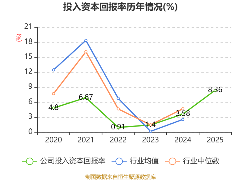 数据显示,2025年公司加权平均净资产收益率为10.46%,较上年同期上升4.63个百分点。公司2025年投入资本回报率为8.36%,较上年同期上升4.78个百分点。