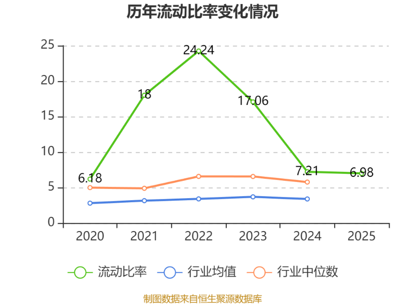 2025年,公司流动比率为6.98,速动比率为5.95。