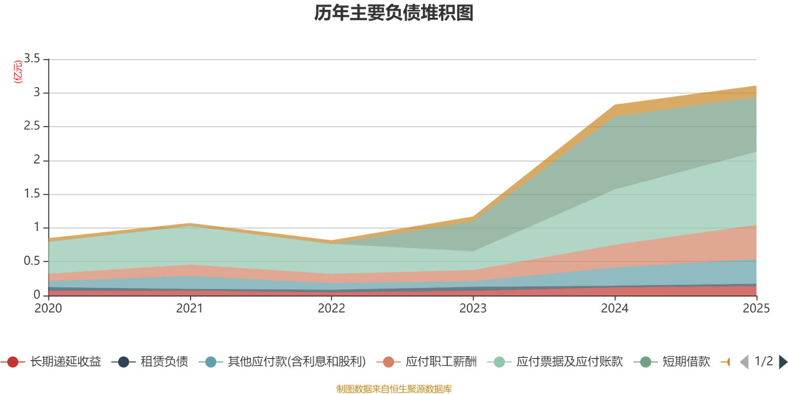 负债重大变化方面,截至2025年末,公司短期借款较上年末减少25.21%,占公司总资产比重下降1.57个百分点;应付票据及应付账款较上年末增加32.12%,占公司总资产比重上升0.8个百分点;应付职工薪酬较上年末增加50.11%,占公司总资产比重上升0.59个百分点;合同负债较上年末减少66.07%,占公司总资产比重下降0.31个百分点。