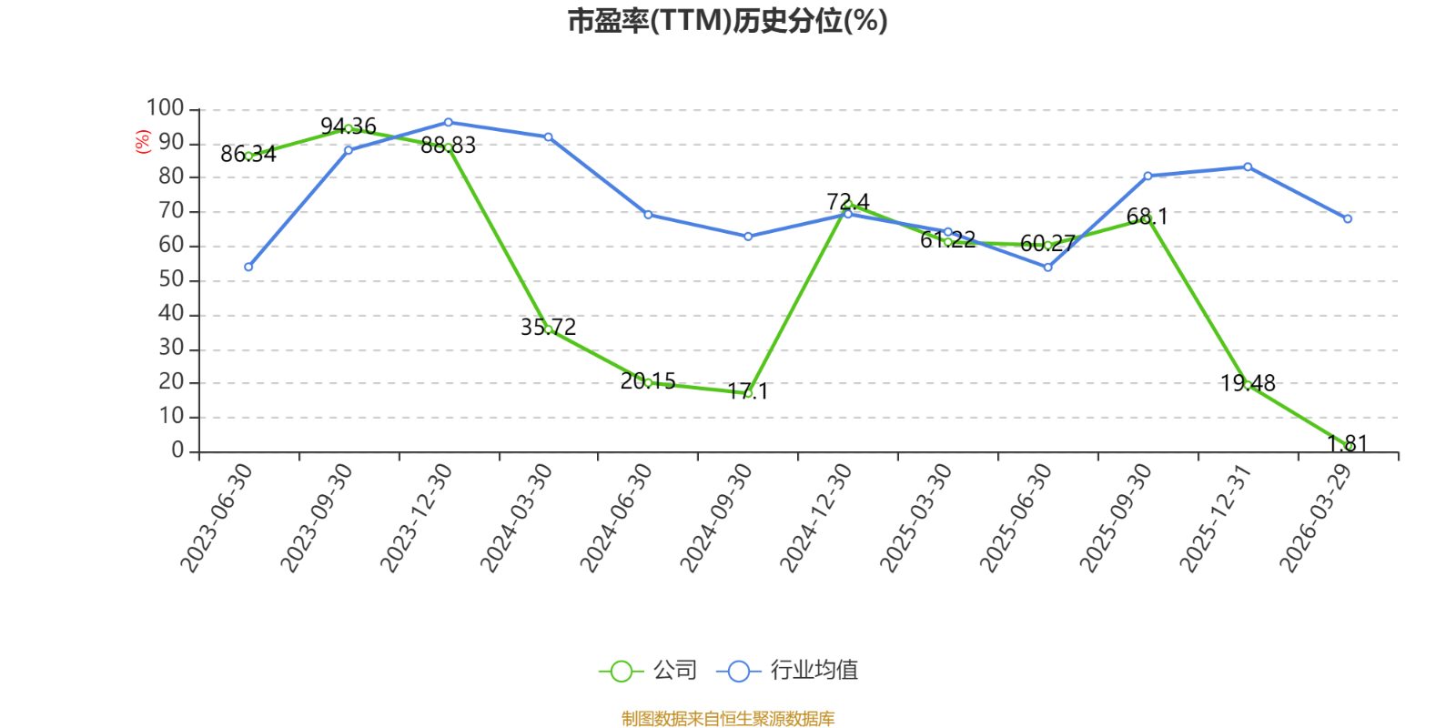 市盈率、市净率为负时,不显示当期分位数,会导致折线图中断。
