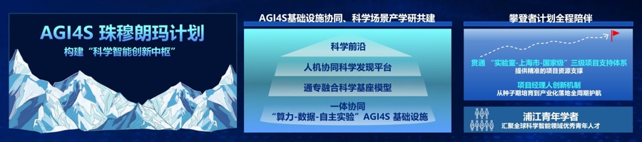 今天举行的第二届浦江AI学术年会上,上海人工智能实验室发布了“AGI4S珠穆朗玛计划”,邀全球科学家申请参与计划,使用“算—数据—自主实验”三位体基础设施底座、科研专用模型和平台,在项目经理人机制推动下攀登科学高峰,让人工智能成为科研范式变革的驱动力。