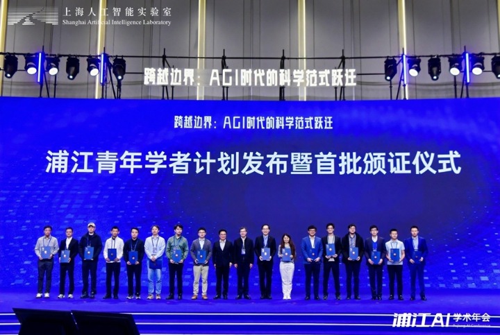 “浦江青年学者计划”属于“AGI4S珠穆朗玛计划”的人才板块。学术年会上,首批20位“浦江青年学者”获颁证书,他们将在攀登高峰的道路上优先获得算、数据、平台、项目等全方位支撑。