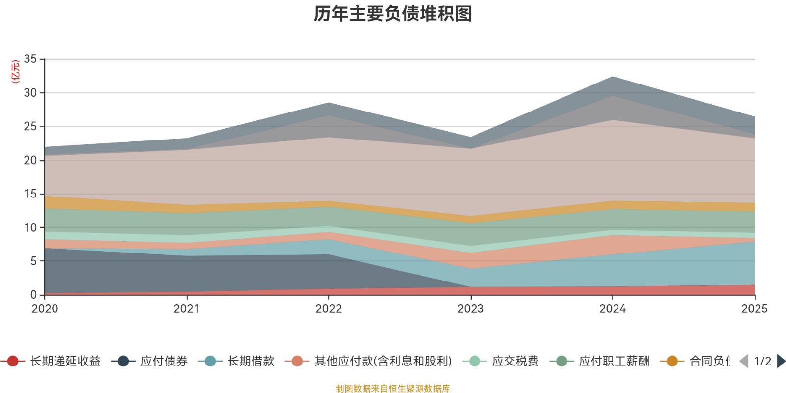 负债重大变化方面,截至2025年末,公司短期借款较上年末减少82.43%,占公司总资产比重下降2.99个百分点;其他应付款(含利息和股利)较上年末减少82.87%,占公司总资产比重下降2.37个百分点;长期借款较上年末增加36.05%,占公司总资产比重上升2.33个百分点;应付票据及应付账款较上年末减少20.07%,占公司总资产比重下降1.59个百分点。