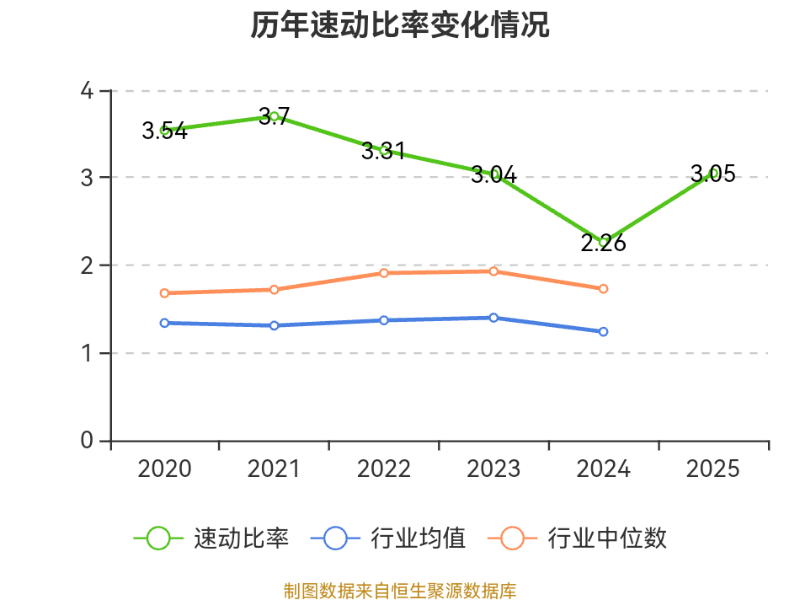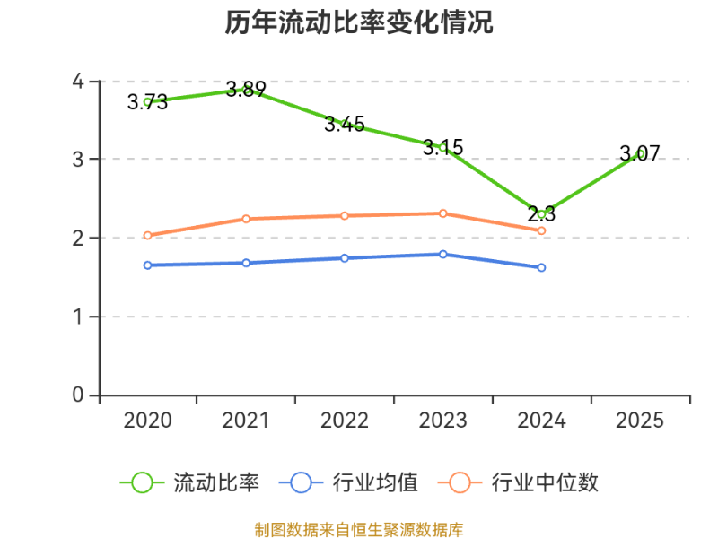 2025年,公司流动比率为3.07,速动比率为3.05。