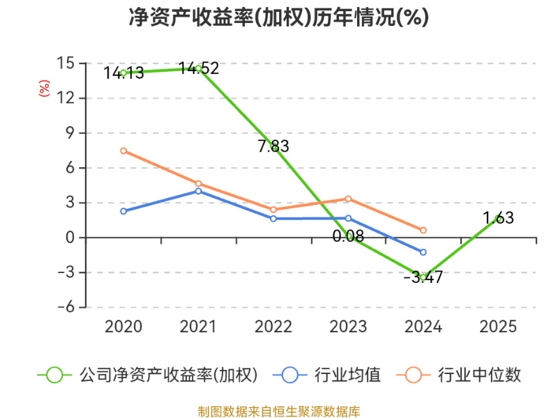 数据显示,2025年公司加权平均净资产收益率为1.63%,较上年同期上升5.1个百分点。公司2025年投入资本回报率为-0.1%,较上年同期上升4.98个百分点。