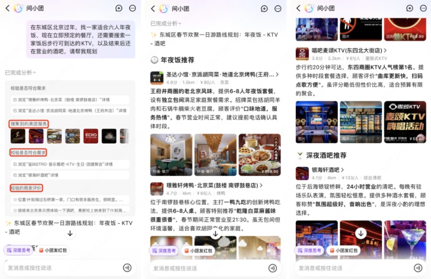 嵌入美团主App的“问小团”,仍停留在问答辅助的初级阶段,未达到任务执行层面。
