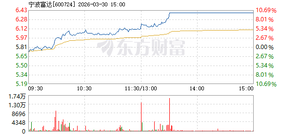 宁波富达3月30日盘中涨幅达5%