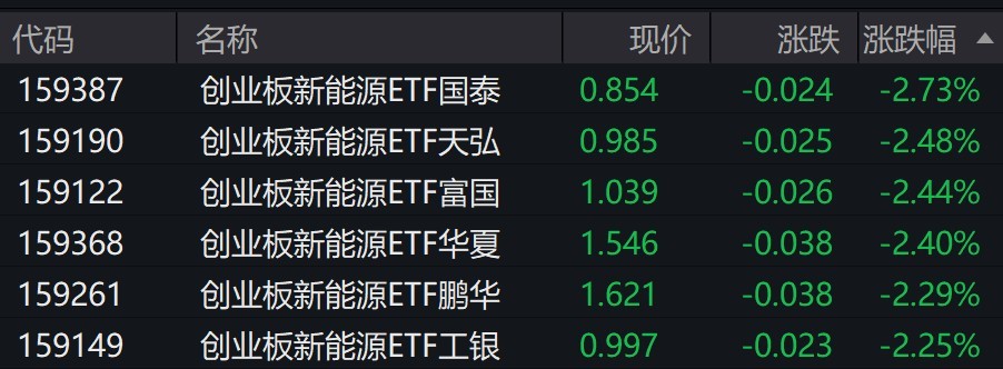原标题:新能源概念股走弱,创业板新能源相关ETF跌超2%