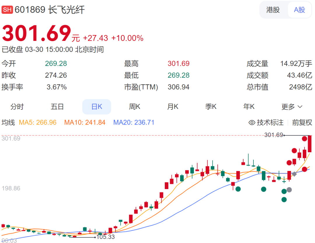 光纤概念盘中持续走高,长飞光纤走出5天3板,续创历史新高,杭电股份4天3板,法尔胜2连板。