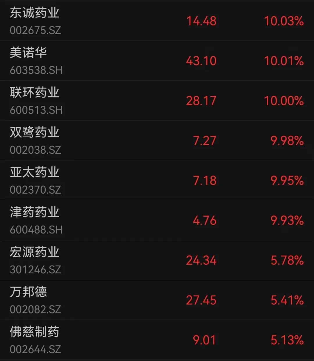 医药板块反复活跃,美诺华走出7天6板,津药药业、联环药业双双2连板。