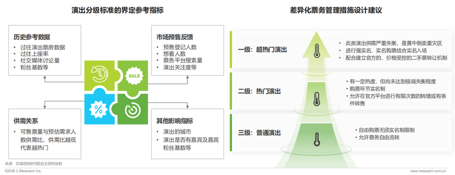 其次是建立演出分级管理制度。报告建议不应以5000人规模作为绝对划分标准,而是建立一套科学、透明的评估模型,将热门程度量化,根据不同等级匹配灵活的票务管理措施:超热门演出贯彻强实名制并建立可控二手转让机制;普通演出则允许票务自由流转。这种精细化的疏导模式,能在打击黄牛的同时兼顾效率与公平,最大限度保留市场活力。